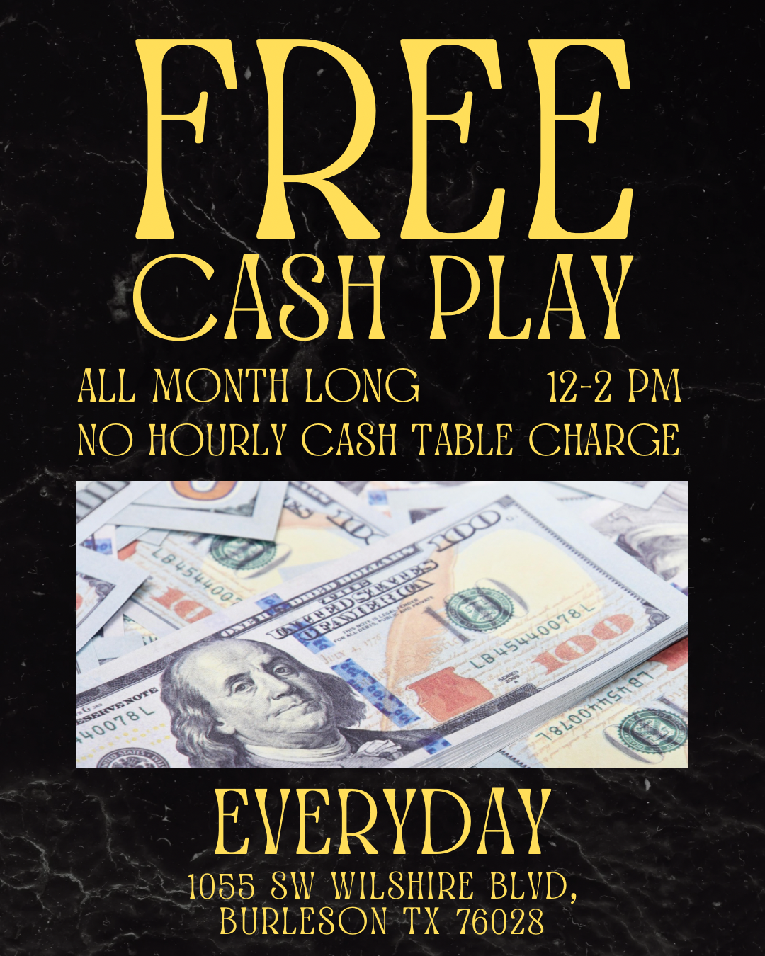 PLAY FOR FREE this month at PHFW with our all new cash game promo!! From NOON - 2 PM we're making your seat time FREE at all of our cash tables!!